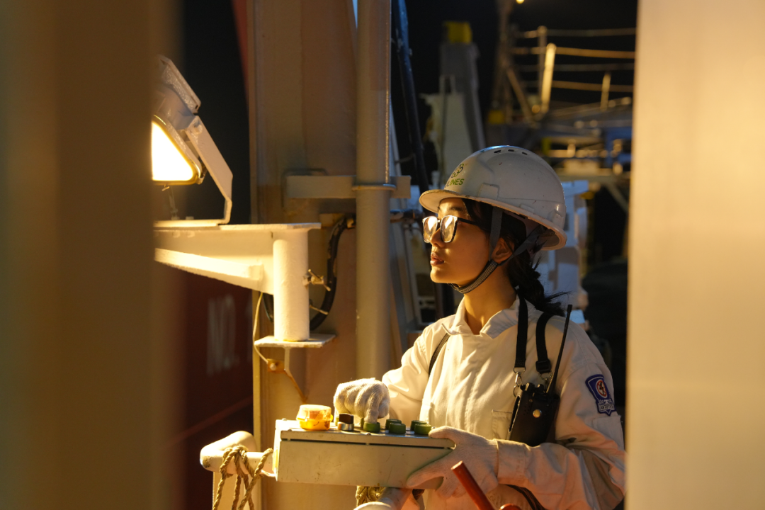 同舟共济,无惧风浪:在 CUL MANILA轮 上,性别不是界限,能力才是标准。李昌华与团队并肩作战,用行动诠释“和谐无扰”的航海精神。